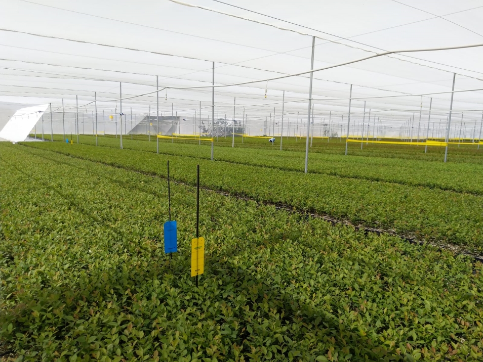 Gracias a un nivel óptimo de sombra (46%), se reproducen las condiciones de sotobosque, con temperaturas más bajas de 4 a 5 grados, incluso en los meses más cálidos, lo que contribuye al desarrollo de las plantas y en el trabajo de los empleados. Otra prueba de campo exitosa, continuó, se llevó a cabo en un vivero de arándanos en Sudáfrica, en este caso con la pantalla termo-reflectante Robuxta® Ldf White. En este caso, con una temperatura exterior de 34 °, la temperatura registrada cerca de las hojas fue de 28 °.